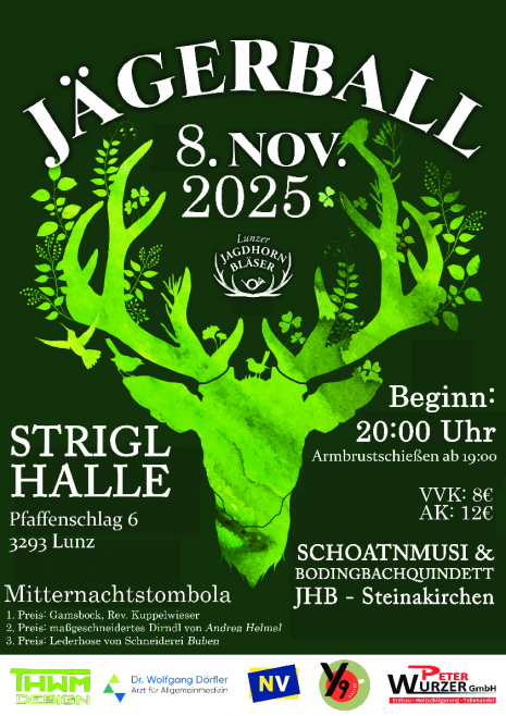 Am Samstag, 8. November 2025, laden die Jagdhornbläser Lunz am See herzlich zum Jägerball in die Strigl-Halle in Pfaffenschlag ein.