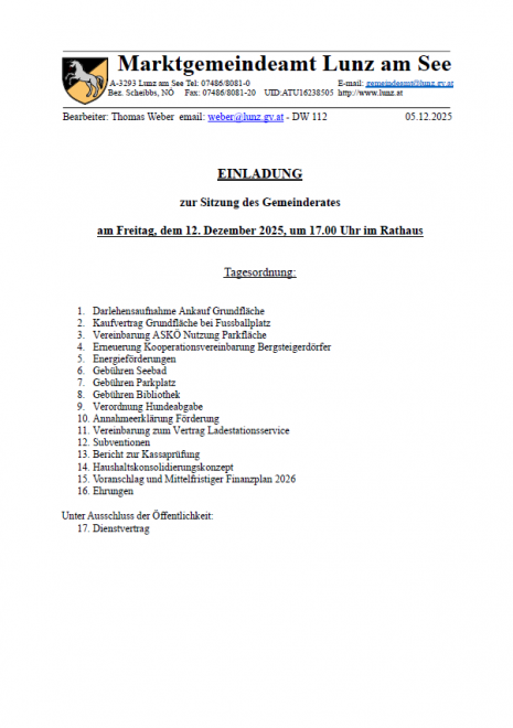 am Freitag, 12. Dezember 2025 um 17:00 Uhr im Rathaus