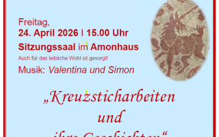 Eröffnung der Ausstellung 2026 des Handarbeitsmuseums Lunz am See Freitag, 24. April 2026 um 15 Uhr im Amonhaus - Sitzungssaal ''Kreuzsticharbeiten und ihre Geschichten''Auch für das leibliche Wohl ist gesorgt!Musik: Valentina und Simon Teile den Artikel ⇐ zurück