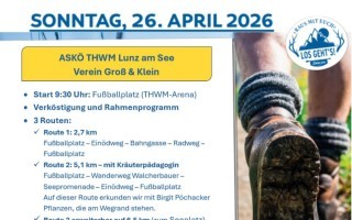 ''Tut gut!'' - Wandererwachen Sonntag, 26. April 2026 - Start 9:30 Uhr - Fußballplatz Lunz Verköstigung und Rahmenprogramm3 Routen Teile den Artikel ⇐ zurück